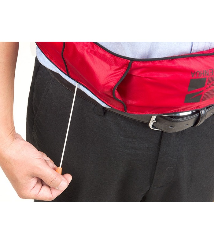En caso de caer en el agua, puede inflarse tirando de la cuerda en forma manual si se requiere esperr a ser recastado o estas lejos de orilla, en forma de aro salvavidas de vida, que puede mantener al usuario por encima del agua.
