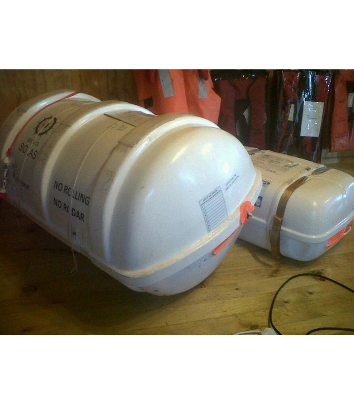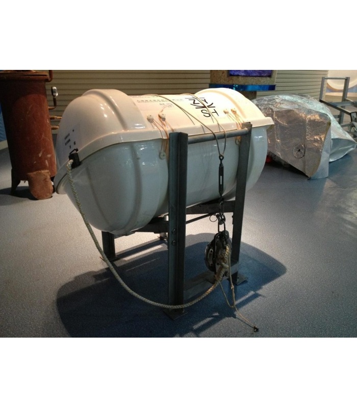Calzo para balsas cilindricas solas desde 6 hasta 25 personas, incluye cables y tensores, además del soporte para colocar la válvula hidrostática.