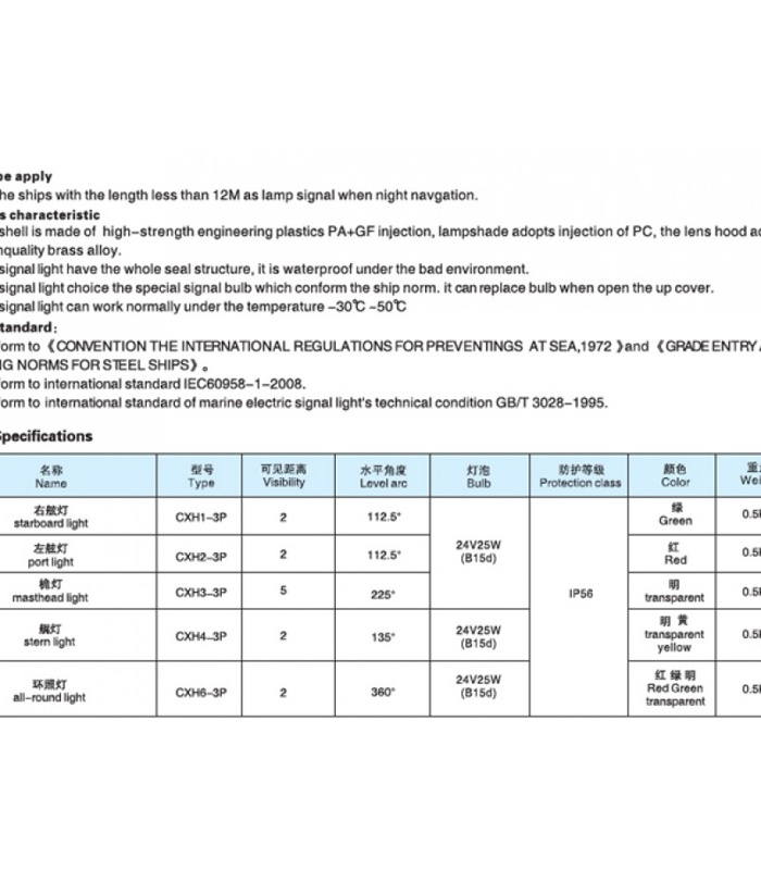 Nombre del producto:Luz de navegación de 24 V para embarcaciones/yate < 12 mts eslora