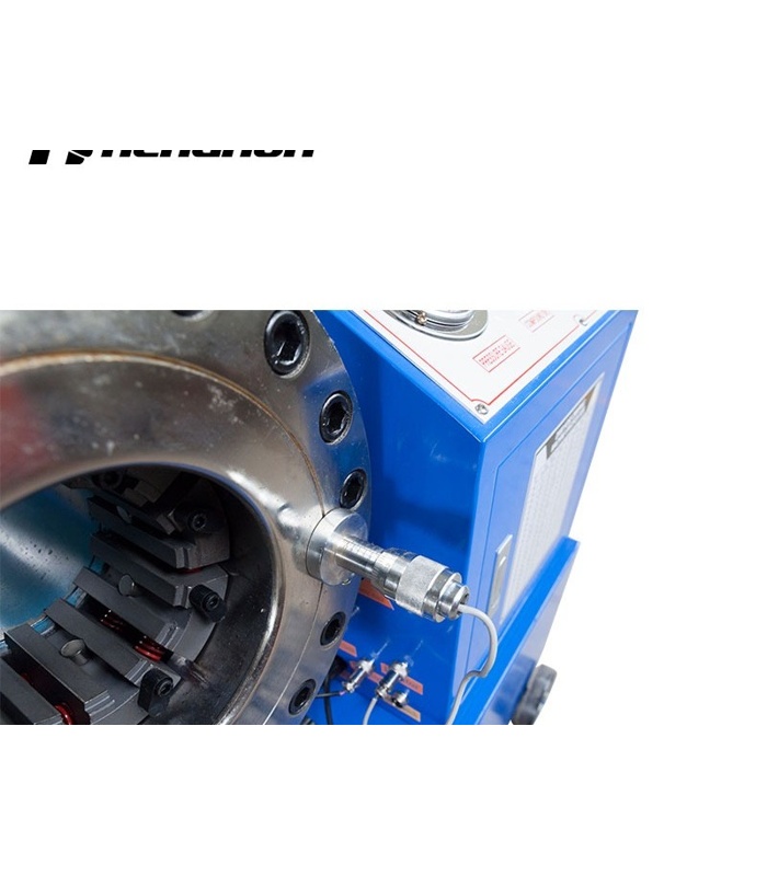 Es una máquina prensadora de mangueras hidráulicas de uso semi industrial, talleres, maestranzas, permite por su gran fuerza de compresión, trabajar prensando mangueras desde 1/4” hasta 2” de diámetro interior, desde R1 hasta R9, 1 a 4 mallas. Posee un sistema de ajuste de calibrador, ante varios prensados de misma manguera y diámetro que permite operar con sistema semi automático, que conserva memoria de prensado anterior, realizado con solo pulsar una vez.